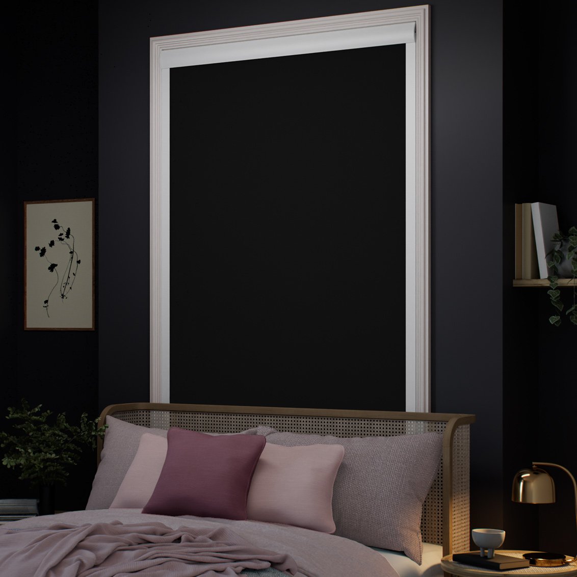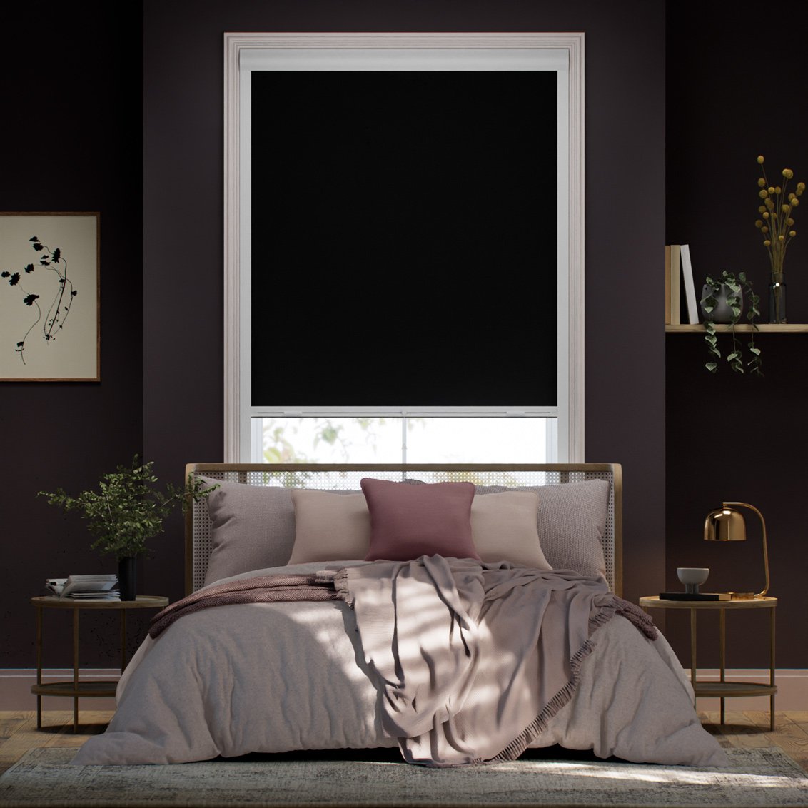 Sleek and bold, this atomic black blackout roller blind offers total light elimination for modern interiors. Its fully enclosed frame ensures a precise, light-sealed fit in minutes. Perfect for bedrooms, home cinemas, or any room needing complete darkness and comfort.