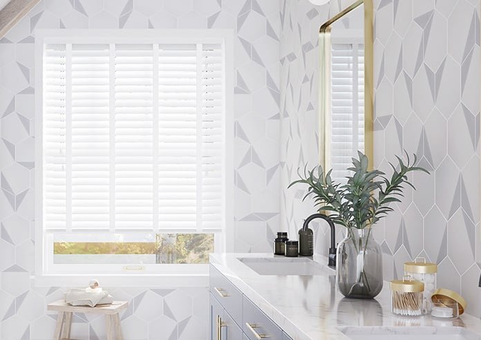 The Ecowood Deluxe Frost White Fine Grain Venetian Blind features wide, adjustable faux wood slats with a realistic grain texture and stylish linen ladder ribbons. Its snow-white finish brightens any room while offering durable, moisture-resistant performance. Perfect for bathrooms, kitchens, or bedrooms, it blends elegance with practical functionality.