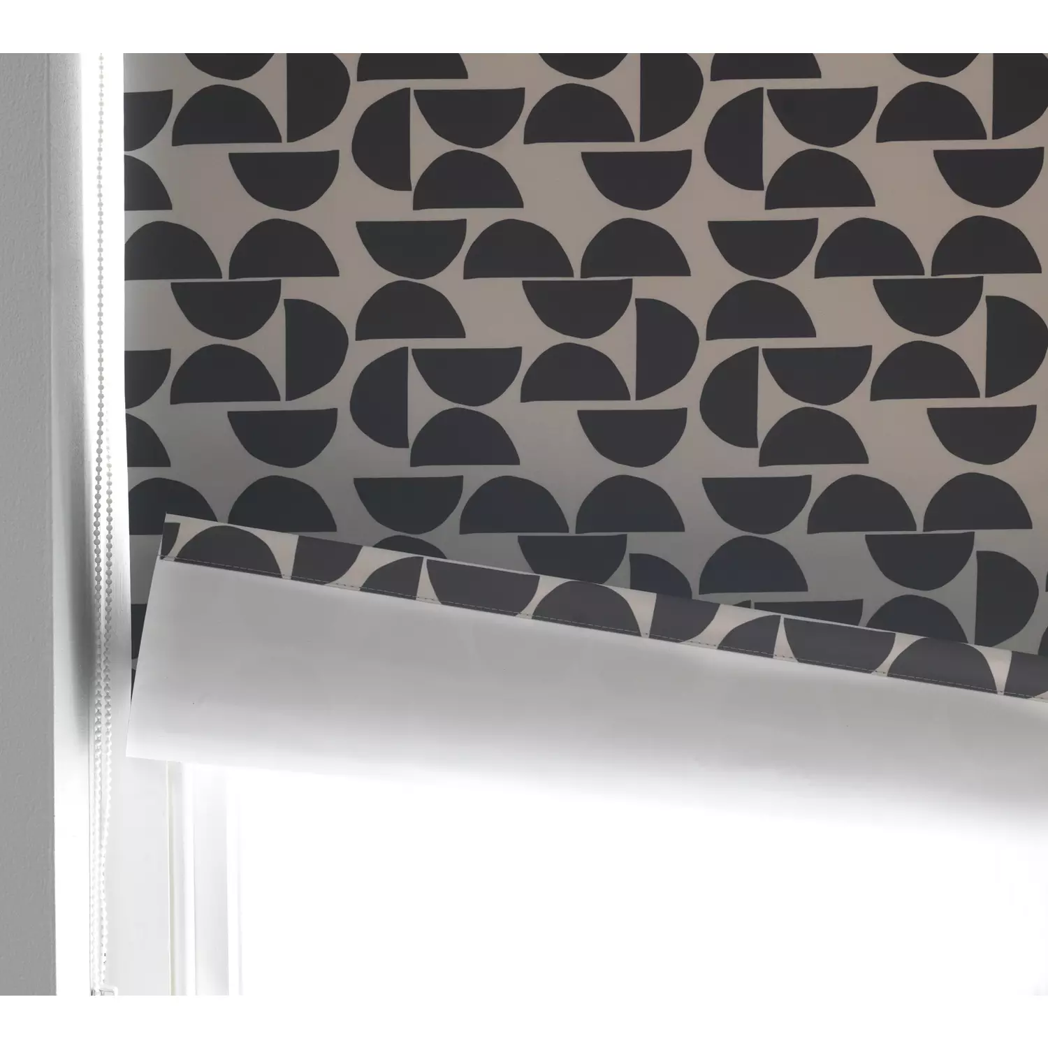 Add a bold statement to your interiors with this geometric blackout roller blind in black and grey tones. Featuring a striking abstract pattern, it combines modern design with complete light control. Ideal for bedrooms or living spaces, offering both privacy and visual appeal.