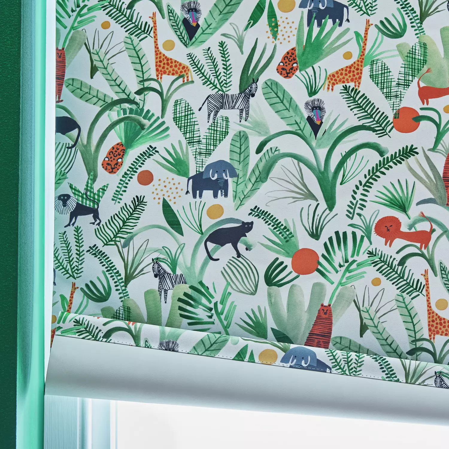 Bring the jungle to your child’s bedroom with this playful green wildlife blackout roller blind. It blocks out sunlight for better sleep while adding a fun, colorful touch to the room. Easy to fit, trim, and maintain — perfect for a peaceful and safe environment for little ones.