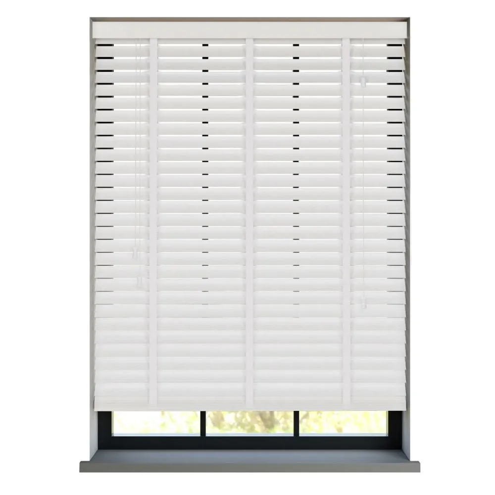 Enhance your space with Oak White Wooden Blinds featuring elegant decorative tapes. Crafted from durable faux wood, these 50mm slatted blinds provide reliable privacy and light control. Waterproof and versatile, they suit bathrooms, bedrooms, kitchens, and living areas.